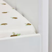 This IKEA TROLLDOM fitted sheet for cot features a playful hedgehog pattern on a white background. Made from sustainably sourced cotton, it is both soft to the touch and breathable. The elastic edging ensures it stays in place, perfect for your active baby. Durable and easy to care for, just wash at 60°C and no need to iron. Made from 100% cotton, it is gentle on your child's skin.