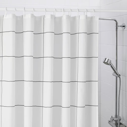 Product Name: JÄMTSTARR Shower Curtain Color: White with check pattern Dimensions: 180 cm × 200 cm (71" × 79") Material: 100% Polyester (durab...