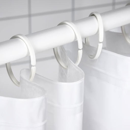 Product Name: HASSJÖN Shower Curtain Ring Color: White Material: Plastic Diameter: Approx. 4.8 cm (inner diameter to fit standard shower rods)...