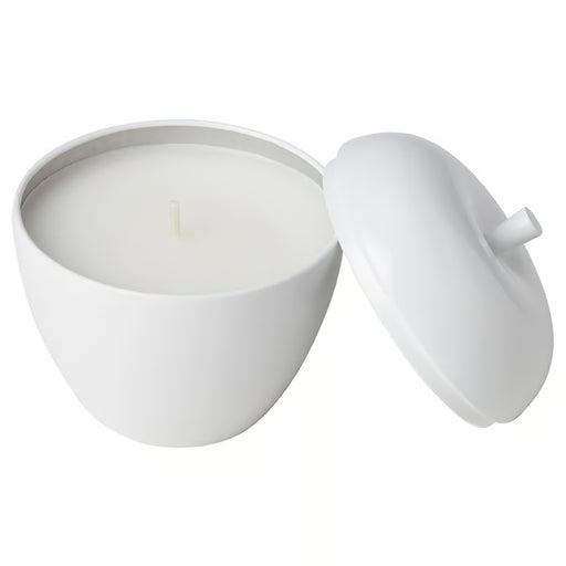 View full detailsProduct name: VINTERFINT Type: Scented candle in metal tin Shape: Apple-shaped Colour: Vanilla white Material: Wax with cotton wick, metal ti...