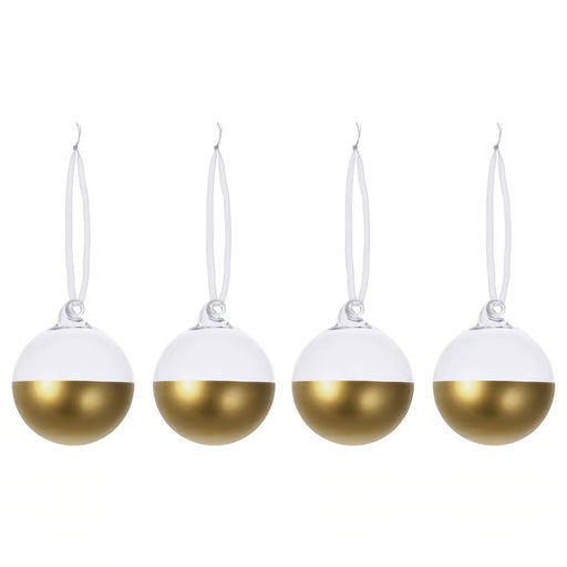 View full detailsProduct name: VINTERFINT Type: Tree ornament – bauble Colour: Clear glass with gold-colour accents Diameter: 6 cm (2 ¼ ") Material: Glass, me...
