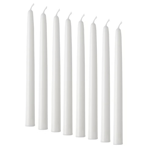 View full detailsProduct name: VINTERFINT Type: Unscented taper candle Colour: White Height: 25 cm (9 ¾ ") Diameter: Approx. 2 cm (¾ ") Material: Paraffin wa...