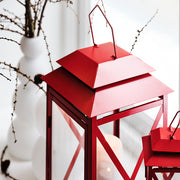 The VINTERFINT bright red lantern creates a cozy and festive atmosphere both indoors and outdoors. Designed for tealights, it features a durable metal frame with glass panels that protect the flame and cast a warm glow. Lightweight and portable, this lantern is ideal for adding a cheerful accent to tables, patios, windowsills, or festive décor setups, bringing Scandinavian holiday charm to your home