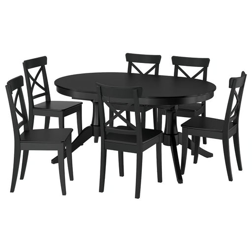 View full detailsProduct Name: ROSENTORP / ROSENTORP Type: Extendable dining table with 6 chairs Color: Black / Black Table Dimensions: Length: 160 cm (63 ") E...