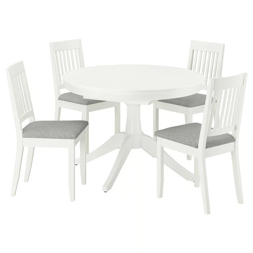 View full detailsProduct Name: NÄSINGE / NÄSINGE Type: Dining table with 4 chairs Color Combination: White table / White chair frame with Tibbleby beige-grey up...