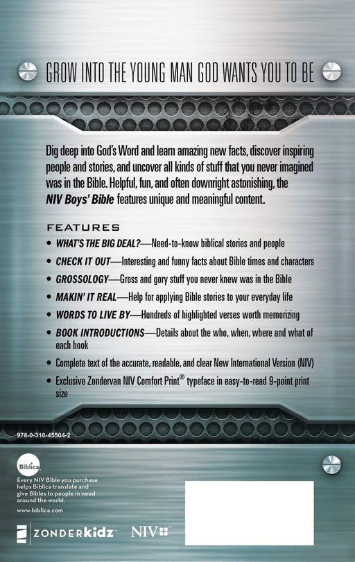 View full detailsAuthor: Zondervan Format: Hardcover Color: Standard design for boys’ edition Edition: Boys' Bible, Comfort Print Language: English (New Inte...