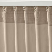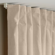 - Multi-way header for versatile hanging options, including rod pockets, tabs, or track rail with gliders and hooks.