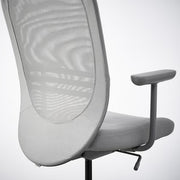 The IKEA FLINTAN office chair with armrests in Diseröd grey is designed for comfort and functionality, making it a perfect addition to your workspace. This ergonomic chair features a high, curved backrest that provides excellent lower back support, helping you maintain a relaxed and focused posture during long hours of work. Its breathable mesh back keeps you cool, while the height-adjustable seat ensures a customized fit for your body. The chair's synchronised tilt mechanism supports active sitting, improving circulation and overall comfort. With a removable and machine-washable seat cover, maintenance is hassle-free. Durable materials and a 10-year warranty guarantee long-lasting performance, making it suitable for both home and business use.