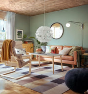 The lamp almost looks like it floats with its airy and light, yet also generous shape. With a clear light bulb, it casts shadow patterns on the walls – but is just as decorative even when switched off.