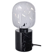 This decorative lamp has a small base in black marble and a tube-shaped LED bulb with irregular dots that create a diffused warm glow. Goes just as well on a table as in a window.