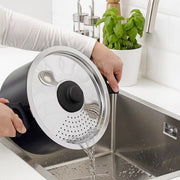 Durch die Dampföffnung wird der Druck reduziert, sodass das Essen nicht so leicht überkocht.
