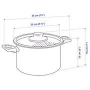 Dieser IKEA HEMLAGAD Topf mit Deckel eignet sich perfekt zum Kochen und Servieren von Speisen. Er besteht aus robustem Stahl mit schwarzer Oberfläche und ist für starke Beanspruchung ausgelegt. Der Deckel schließt Aromen und Nährstoffe ein und macht ihn zur idealen Wahl für alle, die einen zuverlässigen, langlebigen Topf suchen.