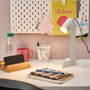 Diese Schreibtischleuchte bietet fokussiertes Licht, perfekt zum Lesen. Dank ihres schlanken und leichten Designs ist sie auch in kleinen Räumen einsetzbar und lässt sich leicht bewegen, um Licht überall dort zu spenden, wo Sie es benötigen. Sie haben die Möglichkeit, den Leuchtenkopf beidseitig zu montieren und so flexibel zu wählen, was für Sie am besten geeignet ist. Dank des verstellbaren Leuchtenkopfs können Sie das Licht ganz einfach dorthin richten, wo Sie es haben möchten – nach unten zum Lesen oder nach oben, um einen bestimmten Bereich oder eine Wand im Raum zu beleuchten.