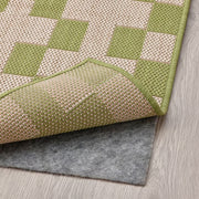 The GANGSTIG flatwoven kitchen mat in green and off-white provides both comfort and practicality for your kitchen. Its flatwoven construction ensures a firm, lightweight mat that is easy to move and clean. The woven pattern adds a fresh, natural look while durable polypropylene fibers make it resistant to stains and daily wear. Perfect for placing near sinks or counters, it adds a touch of color while helping to keep floors clean and comfortable to stand on.