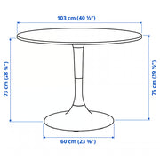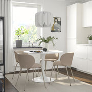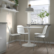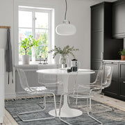 The DOCKSTA table is a modern round dining table with a sleek white finish and a stylish pedestal base. Designed to create an open, airy look, it offers comfortable seating for 3–4 people without table legs getting in the way. Its clean shape and smooth surface make it perfect for kitchens, dining areas, cafés, or compact spaces.