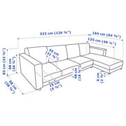 - Tiefe (Chaiselongue): 164 cm (64 5/8 Zoll)