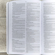Die KJV Geschenk- und Preisbibel in weißem Kunstleder ist eine preisgünstige und elegante Ausgabe, die sich ideal für Großgeschenke und besondere Anlässe eignet. Die Bibel ist in der renommierten King-James-Bibel übersetzt und bietet eine klare und gut lesbare 7,75-Punkt-Schrift im zweispaltigen Layout. Die Worte Christi sind rot hervorgehoben, und thematische Seitenüberschriften erleichtern die Navigation. Zusätzliche Lernhilfen umfassen eine thematische Mikrokonkordanz, ein Bibelwörterbuch und einen „Wohin wenden“-Abschnitt mit Bibelstellen für verschiedene Lebenssituationen. Die farbigen Karten fördern das Verständnis der biblischen Geographie. Der weiße Kunstledereinband verleiht der Bibel einen Hauch von Eleganz und eignet sich daher für kirchliche oder schulische Veranstaltungen, Konfirmationen, Abschlussfeiern und andere besondere Anlässe.