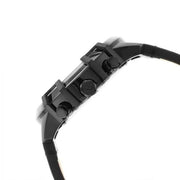 Unleash your style with the Diesel Griffed Black Watch DZ4519. The rugged leather band paired with a masculine chronograph dial makes this timepiece perfect for any occasion. With its red and blue iridescent dial, white stick indexes, and three sub dials, this luxury watch offers both style and functionality. Elevate your look with this effortlessly cool accessory.