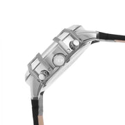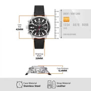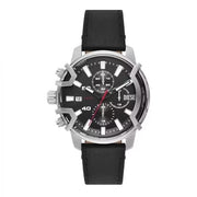 This 42mm downsized Griffed watch from Diesel boasts a sleek black sunray dial, a reliable chronograph movement, and a black leather strap made from leather sourced from an LWG Certified tannery.