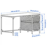 The FJÄLLBO desk features an industrial design that combines a solid pine wood top with a sturdy black steel frame. Its rustic character and raw finish make every piece unique, showcasing natural wood variations. With its generous 140×70 cm surface, it provides plenty of workspace for computers, study materials, or creative projects. The cross-braced steel frame ensures stability, while the open back helps keep cables organized. Durable, stylish, and versatile, the FJÄLLBO desk works well in both modern and vintage-inspired interiors.