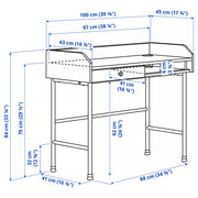 The HAUGA desk in beige is a compact and stylish solution for smaller spaces, offering both workspace and smart storage. Measuring 100x45 cm, it provides enough room for a laptop or study materials without taking up much floor space. A practical drawer keeps small essentials tucked away, while the lower shelf offers extra storage for books or decorative items. With its traditional look and neutral beige finish, the HAUGA desk blends seamlessly into living rooms, bedrooms, or home offices. Backed by a 10-year guarantee, it’s a durable and charming choice for everyday use.