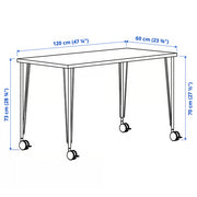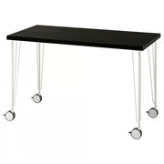 The LAGKAPTEN / KRILLE desk in black-brown/black offers a stylish and practical solution for modern homes. Measuring 120x60 cm, it provides enough space for a laptop, study materials, or office essentials while remaining compact for smaller rooms. The durable LAGKAPTEN tabletop resists scratches and stains, while the KRILLE legs with castors make it easy to move the desk wherever it’s needed. With lockable wheels for stability and a sleek, minimalist design, this desk combines flexibility, functionality, and contemporary style, backed by a 10-year guarantee.