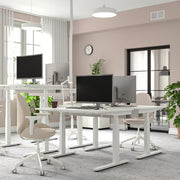 The MITTZON sit/stand desk in electric white is a flexible and ergonomic solution for modern workspaces. With the touch of a button, you can adjust the height to switch effortlessly between sitting and standing, helping reduce strain and improve comfort throughout the day. Its sturdy steel frame and spacious 120x80 cm tabletop provide a stable, durable work surface, while the integrated cable management system keeps your setup tidy. Compact in size yet powerful in function, MITTZON is ideal for home offices and collaborative work environments.