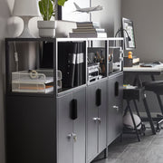 The TROTTEN cabinet with doors in anthracite provides practical storage in a sleek and modern design. Measuring 70x35x110 cm, it fits well in home offices, bedrooms, or shared spaces, keeping items organized and out of sight. The adjustable shelves inside offer flexible storage options, while the durable melamine surface ensures easy cleaning and long-lasting use. Its neutral color complements contemporary interiors while providing functional storage.