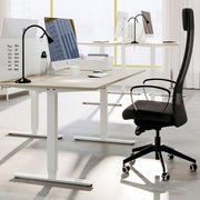 The TROTTEN sit/stand desk is a flexible and practical workspace solution designed to support healthier working habits. With its manual crank system, you can easily adjust the height between 72 and 122 cm to alternate between sitting and standing positions. The spacious 160×80 cm tabletop provides ample room for multiple devices, making it ideal for both home offices and workplaces. Its durable melamine surface is scratch-resistant and easy to clean, while the sturdy steel frame ensures long-lasting stability. With its neutral beige and white finish, TROTTEN blends seamlessly into modern office interiors.