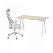 The TROTTEN / MATCHSPEL combination is a smart and stylish workstation set that brings comfort and functionality together. The TROTTEN desk offers a spacious, durable surface in beige with a sturdy white steel frame, making it ideal for both work and study. Paired with the MATCHSPEL chair in light grey and white, you get an ergonomic seating solution featuring adjustable height, lumbar support, and a breathable mesh back for long hours of comfort. Together, this set creates a modern, coordinated workspace that enhances focus, productivity, and style.