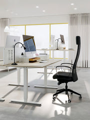 The TROTTEN underframe with sit/stand function makes it easy to create a height-adjustable desk tailored to your needs. Its manual crank allows smooth adjustment between sitting and standing positions, supporting healthy posture and flexibility throughout the day. Designed to fit table tops between 120–160 cm, the white powder-coated frame offers both durability and a clean, modern look. Sturdy and adaptable, TROTTEN is a practical choice for home offices and shared workspaces alike.