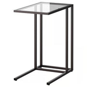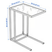 The VITTSJÖ laptop stand combines sleek design with functionality, making it perfect for working comfortably from a sofa, chair, or bed. Its cantilever frame allows the base to slide underneath furniture, keeping your laptop within easy reach. The tempered glass top offers a durable, stylish surface, while the black-brown steel frame ensures lasting stability. A small lower shelf provides extra space for accessories or reading material. Compact and versatile, VITTSJÖ is a practical choice for flexible workspaces with a clean, modern look.
