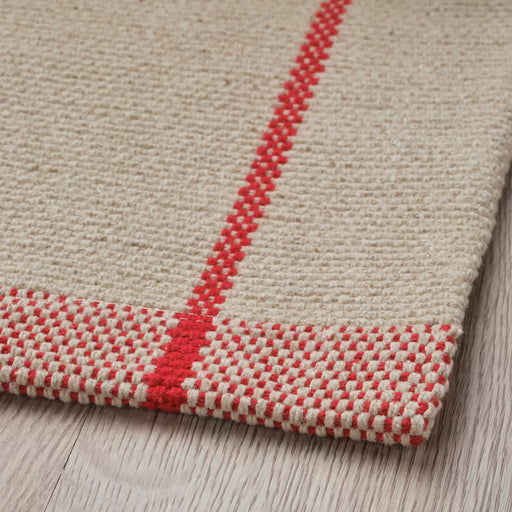 Ver todos los detallesProduct type: Rug, flatwoven Series: RIDSTIG Color/Pattern: Off-white with red pattern Dimensions: 170x240 cm (5' 7" x 7' 10") Material: 100%...