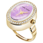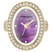 Anne Klein Quartz Analog Purple Dial Golden Metal Ring Watch for Women