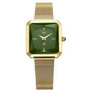 The Fastrack Vyb Flare Quartz Analog Green Dial Watch for girls is a trendy timepiece designed to stand out with its eye-catching green dial and golden stainless steel strap. The shaped alloy case gives the watch a distinctive look, while the mineral glass provides scratch resistance. Its quartz movement ensures precise timekeeping, and the sliding clasp offers both security and comfort. Part of the Vyb Collection, this watch is backed by a 6-month warranty, covering manufacturing defects and plating issues. Ideal for girls who want a fashionable and functional accessory for everyday wear.