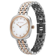 Titan Aura Quartz Analog White Mother Of Pearl Dial Rose Gold and Silver Stainless Steel Strap Watch for Women