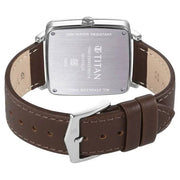 The Titan Avant Garde Multifunction Watch exudes a timeless design with a rectangular stainless steel case and a silver dial. The brown leather strap offers comfort while providing a stylish contrast. Featuring multifunctional capabilities, this timepiece is the perfect accessory for the modern man who appreciates both style and practicality. With its buckle lock mechanism and mineral glass, it ensures durability and elegance, making it an ideal choice for any occasion