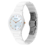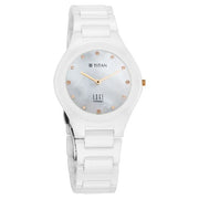Titan Edge Ceramic Quartz in Arctic White with Diamonds and Rich Mother Of Pearl Dial Watch for Women