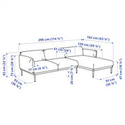 - Chaise longue can be placed on either the left or right side to suit your space and preferences