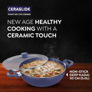 Prestige Ceraglide Ceramic Coated 5L(30cm) Non-Stick Kadai with Glass lid