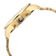 The green dial adds a modern touch to the design, creating a striking contrast with the golden strap. The dial features chronograph functionality, allowing for precise time measurement, while the quartz movement ensures accurate timekeeping.