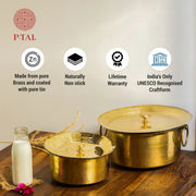 Cooking food and boiling milk in brass vessels provide added nutritional value and make the food tastier! It is the perfect set for a family that ensures a healthy lifestyle and adds an aesthetic touch to your kitchen.