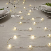 The SNÖYRA LED Lighting Chain offers a versatile and stylish solution for illuminating indoor spaces. With 40 warm white LEDs spaced evenly along a 4.9-meter silver-coloured wire, it provides a soft, ambient glow suitable for various settings, including living rooms, bedrooms, or as part of festive decorations.Its battery-operated design allows for flexible placement without the need for nearby power outlets. The built-in LED lights are energy-efficient, boasting a long lifespan of approximately 25,000 hours. The frosted finish of the bulbs adds a subtle elegance, making it a perfect addition to any home decor.