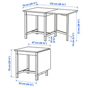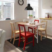 The PINNTORP gateleg table combines the charm of traditional Scandinavian design with smart, space-saving functionality. Crafted from solid pine with a light brown stained top and white stained base, it brings warmth and contrast to your dining area. Its foldable drop leaves let you easily switch between a compact table for two or a full dining surface for four, perfect for small kitchens, apartments, or multi-use spaces. Durable, natural, and timeless — a beautiful and practical table that fits any cozy home.