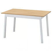 The PINNTORP table is a compact and stylish dining table designed with a two-tone look—a warm light brown stained tabletop paired with clean white stained legs. Its solid wood construction provides long-lasting durability and a natural feel. The simple, Scandinavian style makes it easy to match with any interior, especially in kitchens and small dining spaces.