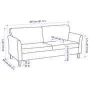 The IKEA EKHOLMA 3-seat sofa combines elegant design with outstanding comfort. Its sophisticated appearance features a fitted cover with piping and visible wooden legs, adding a classic touch to any living space. The seat cushions are designed with durable pocket springs that provide even support, ensuring both long-term comfort and shape retention. With a removable and washable cover, maintaining the sofa’s fresh look is effortless.