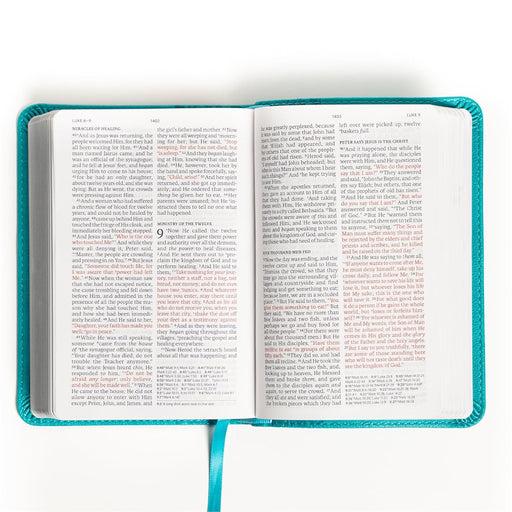 View full detailsAuthor: Holman Bible Publishers Cover Material: Teal LeatherTouch (imitation leather) Binding: Smyth-sewn, lay-flat binding Dimensions: 4.5" x...