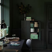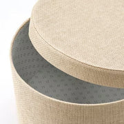 These round boxes are reminiscent of elegant hat boxes of the past. Perfect for storing scarves or other accessories. Woven paper on the outside, and as the icing on the cake โ a classic pattern inside.