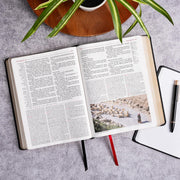 The KJV Study Bible, Large Print Edition in Black Leather touch offers a comprehensive and visually engaging study experience. Released on November 1, 2024, this edition features a generous 11.5-point font size for comfortable reading. The two-column layout and Smyth-sewn binding ensure durability and ease of use. With over 14,000 study notes, full-color maps, photographs, and articles, this Bible is designed to deepen your understanding of Scripture. The black Leather touch cover provides a classic and elegant finish, making it suitable for both personal study and as a thoughtful gift.