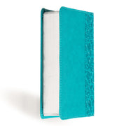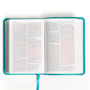 The NASB Large Print Compact Reference Bible, Teal Leather Touch combines portability with readability. Its compact size (4.5" x 6.5") makes it convenient for carrying in a coat pocket, backpack, or purse, while the 8-point font ensures comfortable reading.